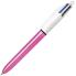 Stylo bille Bic rétractable 4 couleurs Shine - pointe moyenne 1 mm - corps rose métal