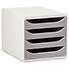 EXACOMPTA Module de classement 4 tiroirs BigBox Gris lumière/Granite En polystyrène choc. Caisson individuel à 4 tiroirs (hauteur 4,4cm) pour documents au format A4+ (24 x 32 cm). Monobloc, ultra-rigide. Coulissement parfait des tiroirs, avec butée de sécurité. Ouverture permettant l'introduction directe de document au format A4+. Gris/Gris Gamme Office Ultra rigide !
