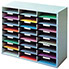 Ce meuble trieur se démarque par son côté ultra-fonctionnel. Il possède 24 compartiments de rangement pouvant contenir des documents au format A4. La structure est solide, composée de panneaux de particules avec revêtement mélaminé. Chaque compartiment intérieur est fait de carton ondulé, ce qui procure à l'ensemble une bonne résistance à l'utilisation, même régulière. Ce meuble trieur est particulièrement adapté aux espaces de tri, qu'il s'agisse de courrier ou de contrats.