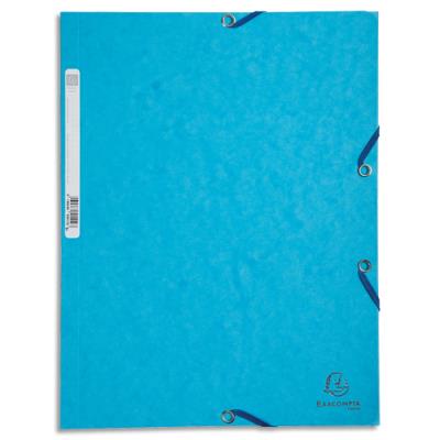 Chemise Exacompta 3 rabats à élastiques - en carte pelliculée 5/10e - 425g - bleu clair