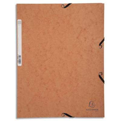 Chemise 3 rabats et élastique Exacompta, en carte lustrée 5/10e, 400gr. Format 24x32cm. Coloris Tabac