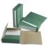 Dossier d'archives en carton épais de couleur vert pour le classement vertical ou horizontal, trois rabats maintiennent les documents en place. La fermerture est assurée par un élastique large. Etiquette au dos.
