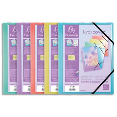 Chemise personnalisable Exacompta - 1 face - 3 rabats à élastique Kreacover - en PP - Coloris assortis pastel