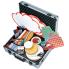dimensions valise: (L)480 x (P)370 x (H)160 mm, couleur:gris argenté, contenu: nuages, rectangles, ovales, cercles 95 mm, cercles 140 mm, cercles 195 mm, gomettes, marquers, ruban crêpé, ruban adhésif, bâton de colle, épingles, coussin, ciseaux, cutter et pointeur laser, aluminium (class 2) (UMK)