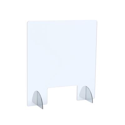 Cette vitre de protection empêche le contact direct avec le public et prévient donc la transmission de bactéries. La petite ouverture permet le passage de documents. Ce panneau séparateur est en Plexiglass -PMMA et épais de 4 mm. Sa transparence, son aspect visuel et sa résistance aux rayures font que le PMMA peut être considéré comme une alternative légère au verre. Piétement en polystyrène choc. Facile à installer, assemblage du pied par simple emboîtement et fixation par adhésif double face. Résiste aux produits désinfectants -eau de javel, gel hydroalcoolique, lingettes nettoyantes....