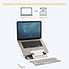 Soulagez vos douleurs cervicales ainsi que la fatigue oculaire en rehaussant votre écran à un angle de vue confortable. Le support Hylyft de Fellowes pour ordinateur portable optimise cet angle et offre une meilleure ventilation du PC portable, ainsi qu'un accès simplifié aux ports USB. Doté d'un design minimaliste et léger, fabriqué en aluminium Hylite, il intègre un rebord avant pour éviter que l'ordinateur ne glisse. Ce support se plie entièrement à plat et est livré avec une pochette de rangement qui peut être utilisée comme tapis de souris, ce qui est parfait pour le télétravail. Il s'ajuste sans effort avec 6 réglages en hauteur et 6 angles d'inclinaison.