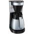 pour 10 tasses, verseuse isotherme en acier inox résistant avec utilisation d'une main, réservoir d'eau transparent, filtre pivotant amovible, bouton marche/arrêt éclairé, 1.050 Watt, dispositif anti-gouttes, arrêt automatique, (1023-10) prise à contact de securité - pour CH avec adaptateur fixe