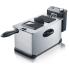 boîtier en acier inoxydable avec couvercle anti-poussière et fenêtre d'inspection, capacité : 3 litres, quantité de fri- ture env. 400 g, bac à graisse amovible et panier à friture, s'éteint automatique lorsqu'on sort le panier, (FR 2431) puissance : 2.000 watts fiche de courant avec terre - pour CH adaptateur fixe inclus