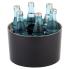 en plastique de haute qualité SAN et en acier inoxydable mat satiné, pour 6 bouteilles de 0,25 à 0,5 l, avec accumu- lateur de froid, coupelle de récupération de capsules et décapsuleur, diamètre : 230 mm, hauteur : 150 mm (620)