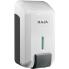 En plastique ABS robuste, le distributeur de Raja est conçu pour utiliser facilement le savon liquide et le gel hydroalcoolique grâce au bouton poussoir et faciliter leur répartition uniforme sur les mains. Le réservoir est amovible et le dispositif se nettoie sans encombre, pour une hygiène parfaite dans vos toilettes. Les distributeurs offrent une solution économique et pratique, qui s'adapte parfaitement aux lieux publics type sanitaires très fréquentées. Compatible avec la plupart des marques et flacon de savon liquide et gel hydroalcoolique pour une désinfection des mains. Le distributeur se recharge rapidement et en toute simplicité grâce à l'indicateur transparent et pratique, qui permet de voir lorsque le flacon est vide.
