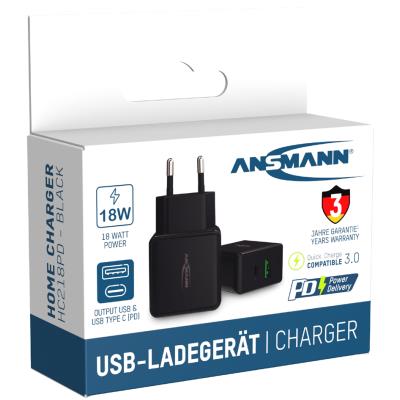 pour charger rapidement et efficacement tous les appareils électroniques, fiche Euro - 1x port femelle USB-A, protect- tion contre les courts-circuits, les surtensions, les sur- intensités, 3.000 mA, 18 watts, Smart IC contrôle de charge (1001-0109) port USB-A : compatible QuickCharge 3.0 port USB-C : compatible PowerDelivery 3.0