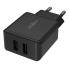 pour charger rapidement et efficacement tous les appareils électroniques, fiche Euro - 2x port femelle USB-A, protec- tion contre les courts-circuits, les surtensions, les sur- intensités, 2.400 mA, 12 watts, couleur : noir (1001-0106)