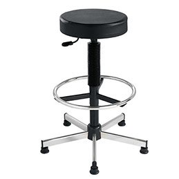 Tabouret sur patins antidérapants, repose-pieds fixe et base chromés.