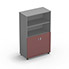 Armoire Rio 1/2 portes - 1/2 bibliothèque H.133,3 x L. 80 x P. 42,6 cm corps gris aluminium 2 portes battantes verre émaillé rubis - équipée de 3 tablettes
