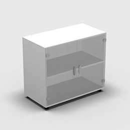 Armoires basse 2 portes en verre transparent dépoli - 1 tablette - L 80 x H 69,3 cm - corps décor blanc neige