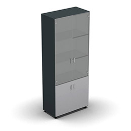 fourniture de bureau, Welcome Office > > Armoire haute mélaminé - 2 portes vitrées + 2 portes mélaminés - 4 tablettes - 80 x 198 cm - verre transparent dépoli - portes mélaminés gris clair - corps gris anthracite