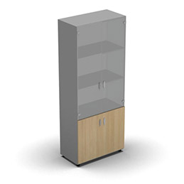 fourniture de bureau, Welcome Office > > Armoire haute mélaminé - 2 portes vitrées + 2 portes mélaminés - 4 tablettes - 80 x 198 cm - verre transparent dépoli - portes mélaminés chêne clair - corps gris aluminium