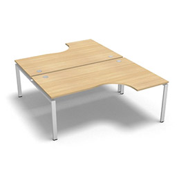 fourniture de bureau, Welcome Office > > Bench 2 plateaux compact à 90 degrés retour 60 cm gamme Conect - chêne clair - Longueur 180 - Piètement Fixe blanc