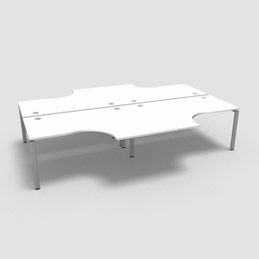 fourniture de bureau, Welcome Office > > Bench 4 plateaux compact à 90 degrés retour 60 cm gamme Conect - blanc neige - Longueur 320 - Piètement Fixe gris aluminium