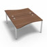 fourniture de bureau, Welcome Office > > Bench 2 plateaux fixes vague asymétrique gamme Conect - noyer ambré - Longueur 140 - Piètement Fixe blanc