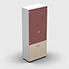 Armoire haute mélaminé - 2 portes vitrées + 2 portes mélaminés - 4 tablettes - 80 x 198 cm - verre émaillé rouge rubis - portes mélaminés érable blanc - corps blanc neige