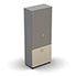 2 portes vitrées coloris émaillé gris souris sur les 2/3 supérieurs de l'armoire.