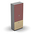 Armoire haute mélaminé - 2 portes vitrées + 2 portes mélaminés - 4 tablettes - 80 x 198 cm - verre émaillé rouge rubis - portes mélaminés hêtre clair - corps gris aluminium
