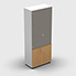 Armoire haute mélaminé - 2 portes vitrées + 2 portes mélaminés - 4 tablettes - 80 x 198 cm - verre émaillé gris souris - portes mélaminés hêtre saumonné - corps blanc neige