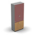 Armoire haute mélaminé - 2 portes vitrées + 2 portes mélaminés - 4 tablettes - 80 x 198 cm - verre émaillé rouge rubis - portes mélaminés hêtre saumonné - corps gris aluminium