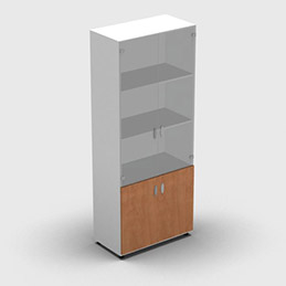 Armoire haute 2/3 portes vitrées et 1/3 portes pleines mélaminés