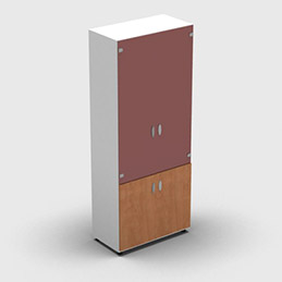 Armoire haute 2/3 portes vitrées et 1/3 portes pleines mélaminés