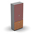 Armoire haute mélaminé - 2 portes vitrées + 2 portes mélaminés - 4 tablettes - 80 x 198 cm - verre émaillé rouge rubis - portes mélaminés pommier de France - corps gris aluminium