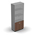 Armoire haute mélaminé - 2 portes vitrées + 2 portes mélaminés - 4 tablettes - 80 x 198 cm - verre transparent dépoli - portes mélaminés noyer ambré - corps gris aluminium
