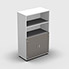 Armoire mélamine H. 133,3 x L. 80 x P. 42,6 cm 1/2 portes + 1/2 bibliothèque - corps blanc neige - portes verre émaillé gris - équipée de 3 tablettes