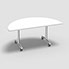 Table abattante demi lune multigamme. Plateau décor érable blanc. Piètement finition alu. Plateau mélaminé ep 25 certifié PEFC, chants droit PVC ép 2 mm.