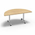 Table abattante demi lune multigamme. Plateau décor érable blanc. Piètement finition alu. Plateau mélaminé ep 25 certifié PEFC, chants droit PVC ép 2 mm.