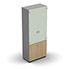 Armoire haute mélaminé - 2 portes vitrées + 2 portes mélaminés - 4 tablettes - 80 x 198 cm - verre émaillé blanc - portes mélaminés chêne clair - corps gris aluminium