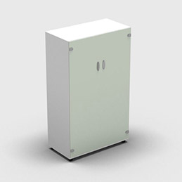 Armoire hauteur 133 cm corps mélaminé blanc 2 portes verre blanches