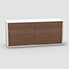 Armoire H. 71 x L. 165 x P. 43,2 cm - structure décor blanc neige - portes coulissantes mélamine décor noyer ambré avec accès face utilisateurs
