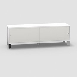 Armoire sur pieds H. 55,2 x L. 165 x P. 43,2 cm - structure décor blanc neige - portes coulissantes Altuglas coloris blanc avec accès face utilisateurs