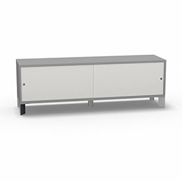 Armoire sur pieds H. 55,2 x L. 165 x P. 43,2 cm - structure décor gris aluminium - portes coulissantes Altuglas coloris blanc avec accès face utilisateurs