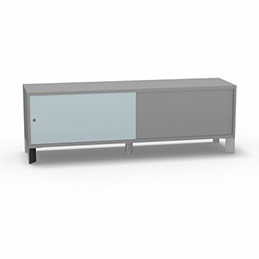 Armoire sur pieds H. 55,2 x L. 165 x P. 43,2 cm - structure décor gris aluminium - portes coulissantes Altuglas coloris bleu lagon avec accès double face