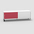 Armoire sur pieds H. 55,2 x L. 165 x P. 43,2 cm - structure décor blanc neige - portes coulissantes Altuglas coloris rouge avec accès double face