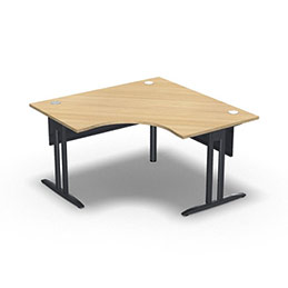 Bureau compact symétrique 90° IdoL L. 140 x L. 140 x Rt 80 cm décor chêne clair sur pieds I fixes centrés - traverse finition gris anthracite sans carter