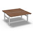 Ensemble de 2 tables de bureau rectangulaires Easy Up L. 160 x P. 80 cm décor noyer ambré sur piétement finition blanc réglable en hauteur par commande électrique