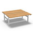 Ensemble de 2 tables de bureau rectangulaires Easy Up L. 180 x P. 80 cm décor hêtre saumoné sur piétement finition blanc réglable en hauteur par commande électrique