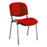 Chaise Anthra avec assise et dossier tissu Bali rouge vif - structure 4 pieds métal de forme ovale gris aluminium avec embouts de protection antidérapants - contre-coque en polypropylène noir
