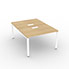 Plateaux en mélamine ép 25 mm. Chants ABS ép 2 mm.Piètement arche métallique 60 x 30 mm équipé de patins noirs et de vérins de réglage. Hauteur plateau 73,5 cm.Traverse en tube métallique 50 x 20 mm.