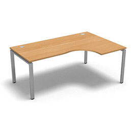 fourniture de bureau, Welcome Office > > Bureau compact à 90 degrés retour 60 cm gamme Conect - hêtre saumonné - Longueur 180 - Piètement Fixe gris aluminium - Retour droite