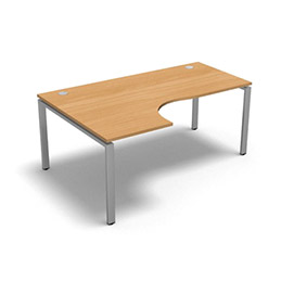 fourniture de bureau, Welcome Office > > Bureau compact à 90 degrés retour 60 cm gamme Conect - hêtre saumonné - Longueur 180 - Piètement Fixe gris aluminium - Retour gauche